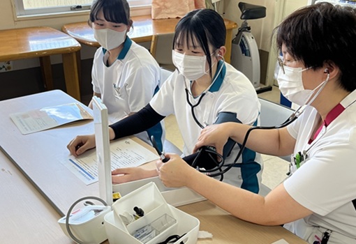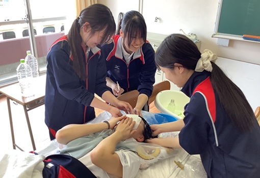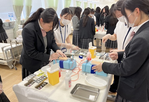 看護医療進学コース「医療職グループワーク」「採血体験」の様子
