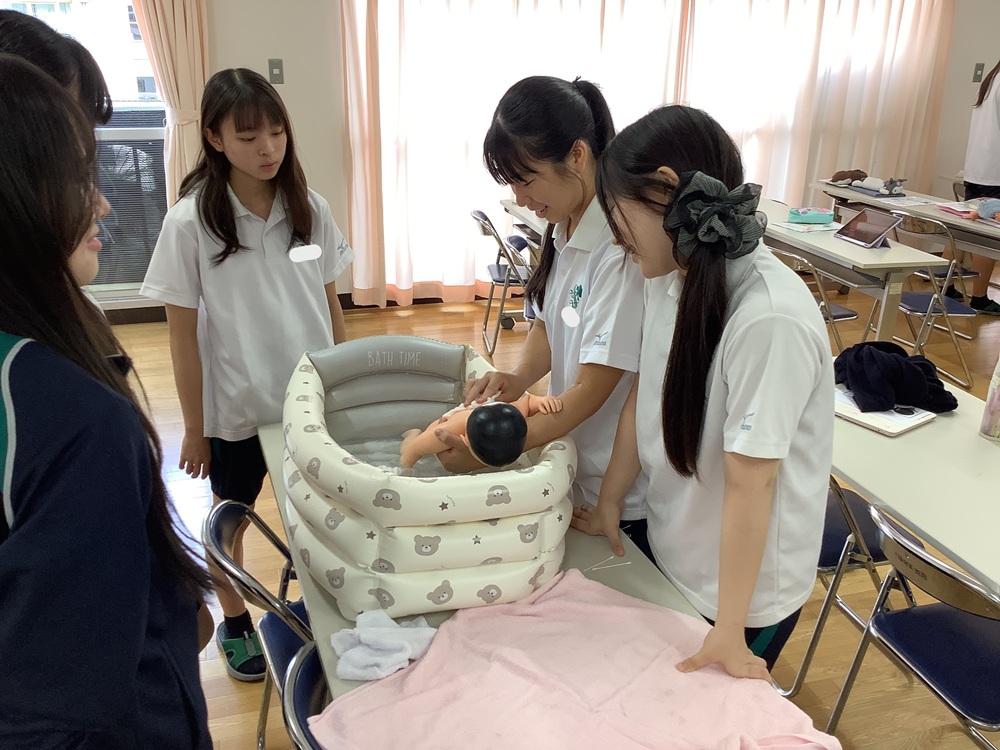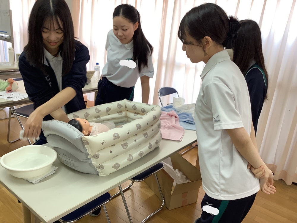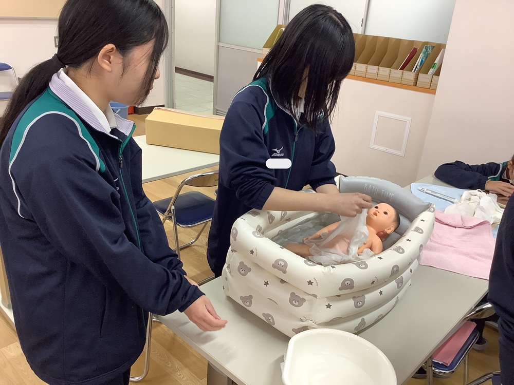 2025年10月・11月、看護医療進学コース3年生の看護医療探究の授業で、赤ちゃん人形を用いた沐浴の実習を行いました。