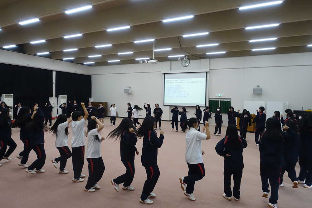 「バナナ体操」「猛獣狩り」「やどかりと屋根」などの遊びを通して、実際に体を動かし実践しながら幼児期の運動遊びの重要性について学びました。
