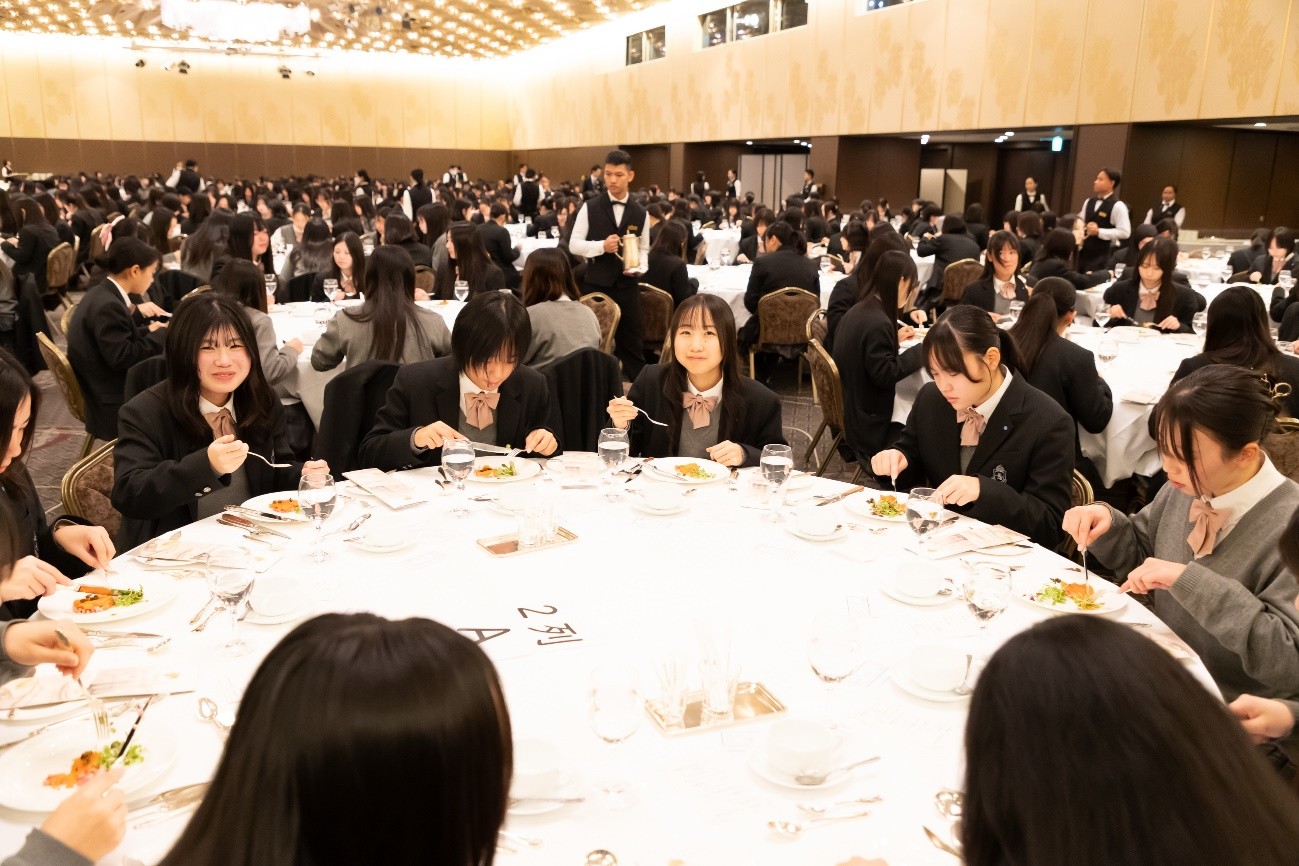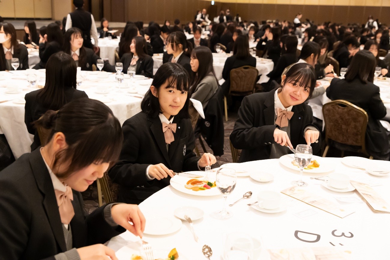 一流ホテルでコース料理をいただきながら、ホテルの方からカトラリーの使い方や食事中のマナーを丁寧に説明していただき、最初はとても緊張していましたが、おいしい料理を楽しみながら、社会人としての食事のマナーや振る舞いを学びました。