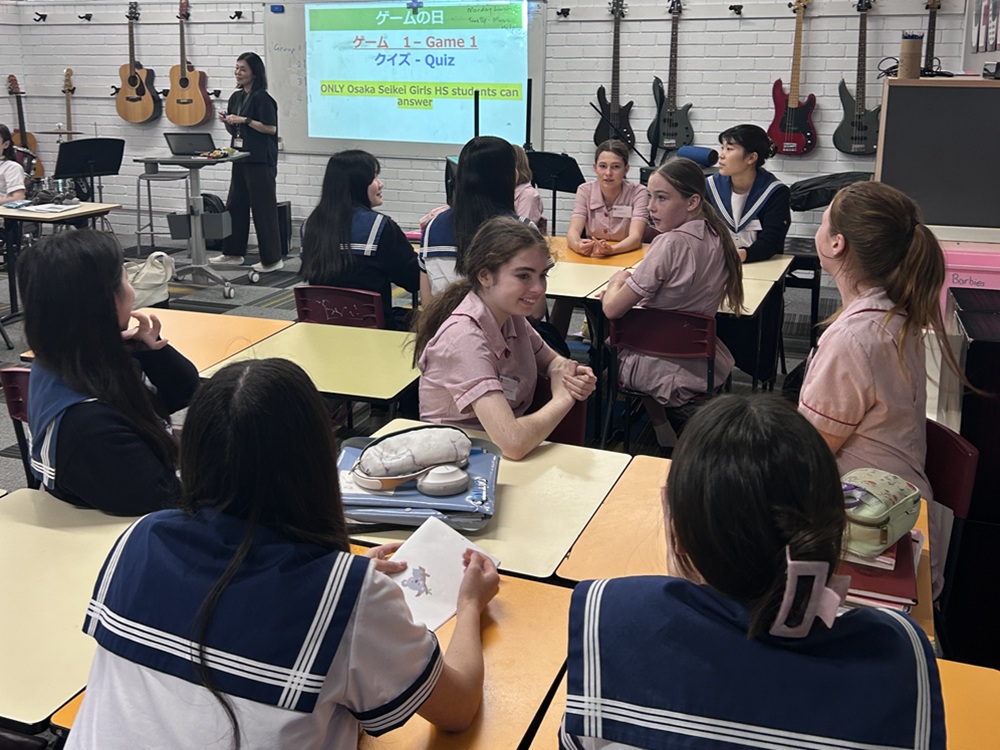 休憩時間や昼食時などに校内で一緒に過ごす、現地校で日本語授業を選択している生徒