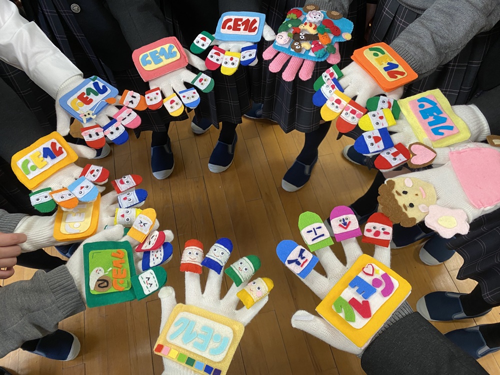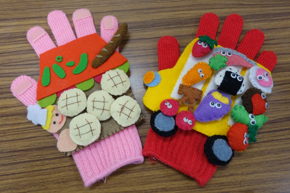 幼児教育コースでは、1年次に生徒一人ひとりが手袋シアターの演目を選び、フェルトを使って制作し、発表まで取り組みました。